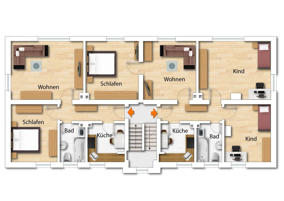 Die Aufteilung der Wohnungen ist vielseitig: vier gut geschnittene 3-Zimmer-Wohnungen, eine großzügige 4-Zimmer-Wohnung sowie eine 2-Zimmer-Wohnung. Jede Einheit verfügt über ein Badezimmer mit Badewanne und ein eigenes Kellerabteil. Ergänzt wird das Angebot durch einen gemeinschaftlich nutzbaren Garten, der den Bewohnern zusätzlichen Wohnwert bietet.
