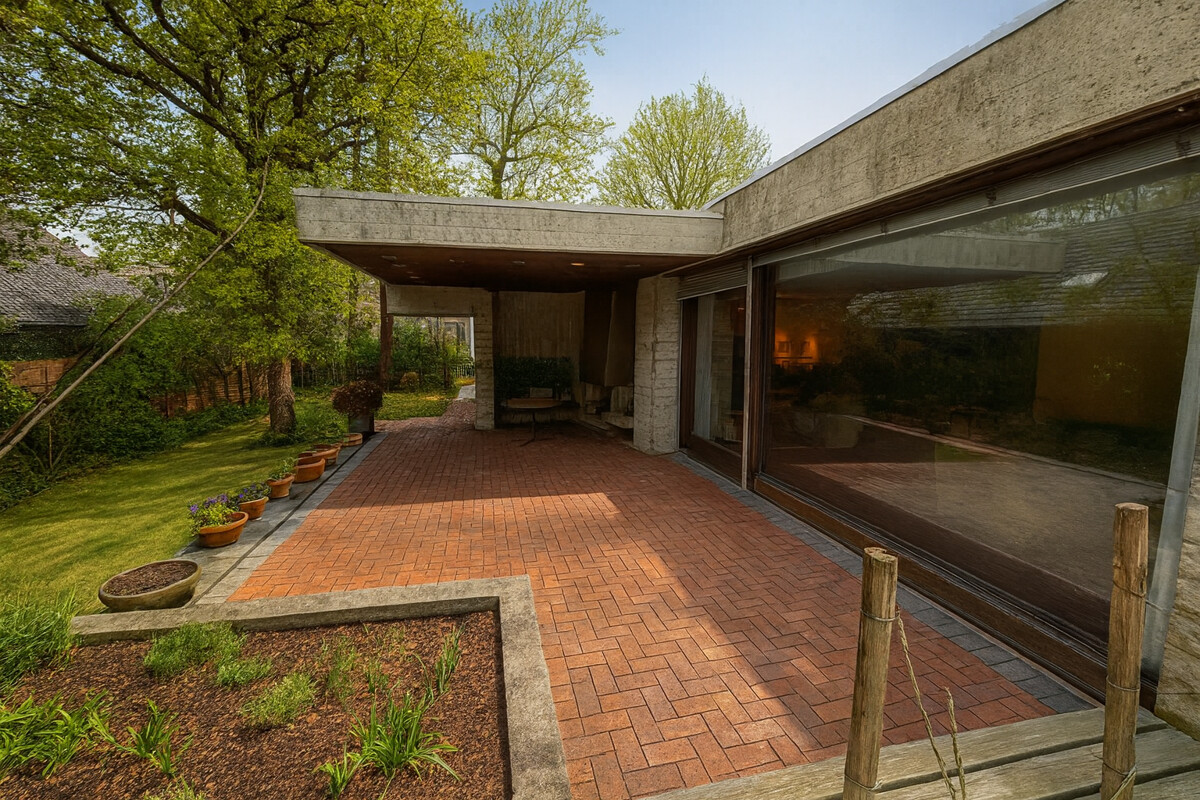 Die markante Bauweise mit Sichtbeton und einem Aufbau aus Beton–Ziegel–Beton verleiht dem Haus eine einzigartige Ausstrahlung und einen unverwechselbaren Stil.