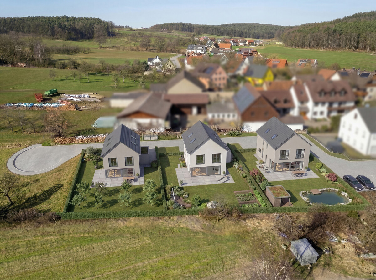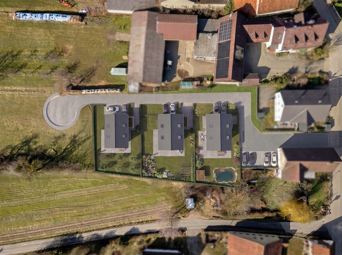 Die zurückversetzte Lage sorgt für eine besonders ruhige und private Wohnatmosphäre. Hier genießen Sie naturnahes Wohnen mit viel Freiraum.
