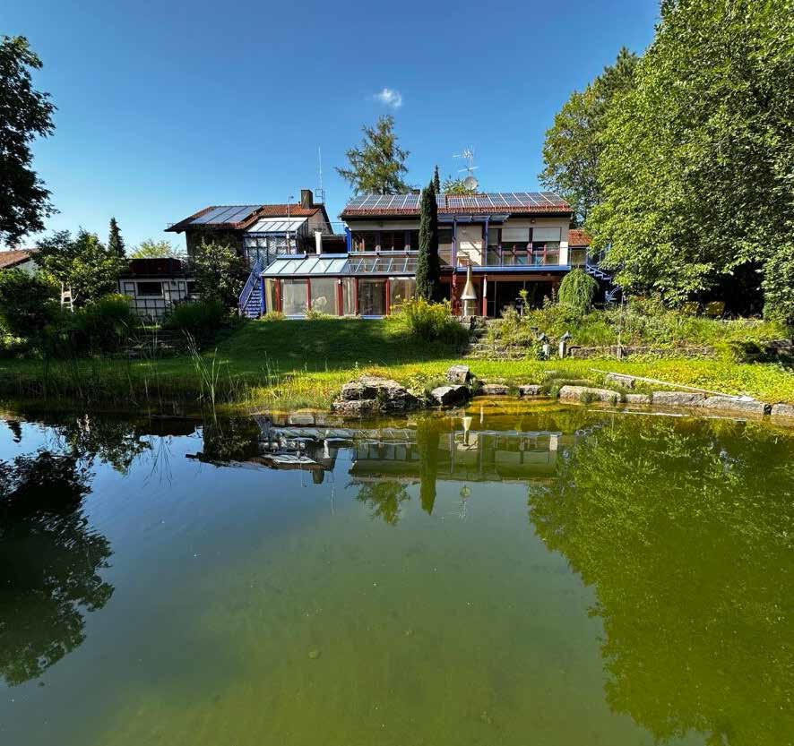 Die parkähnliche Gartenanlage mit Schwimmteich, Obstbäumen, altem Baumbestand, eigenem Bachlauf, sowie weiteren Anbauten und Werkstätten machen die Villa rundum perfekt.