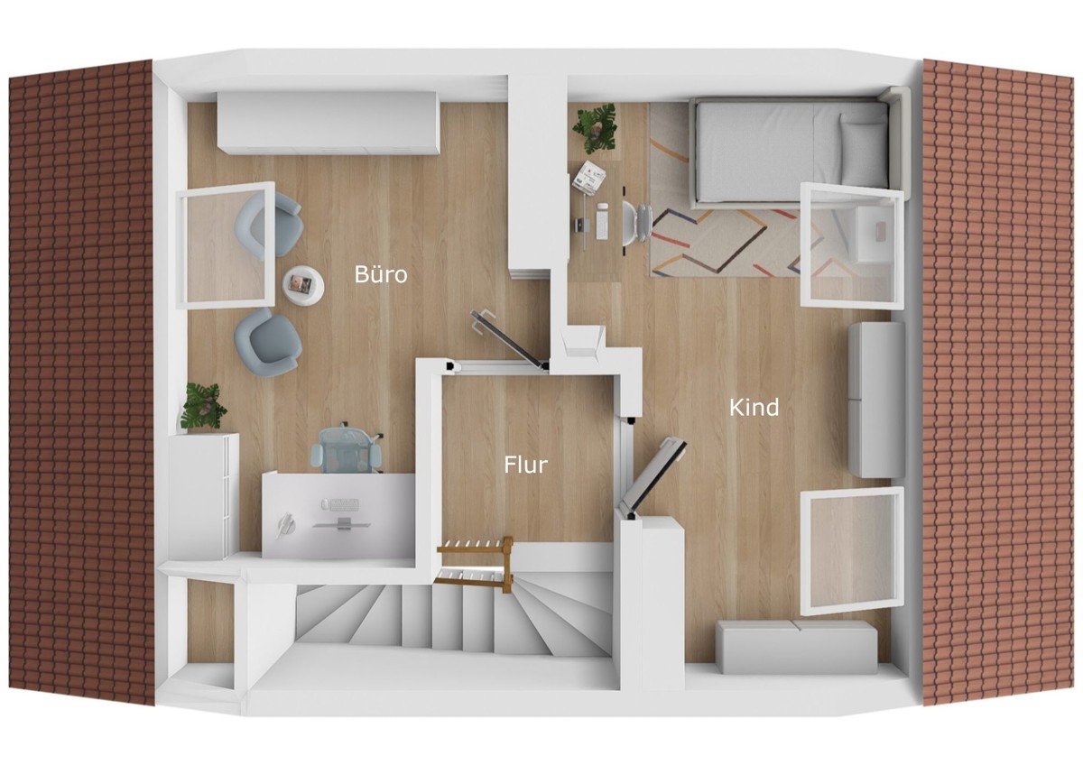 Das Dachgeschoss bietet zwei weitere vielseitig nutzbare Zimmer.