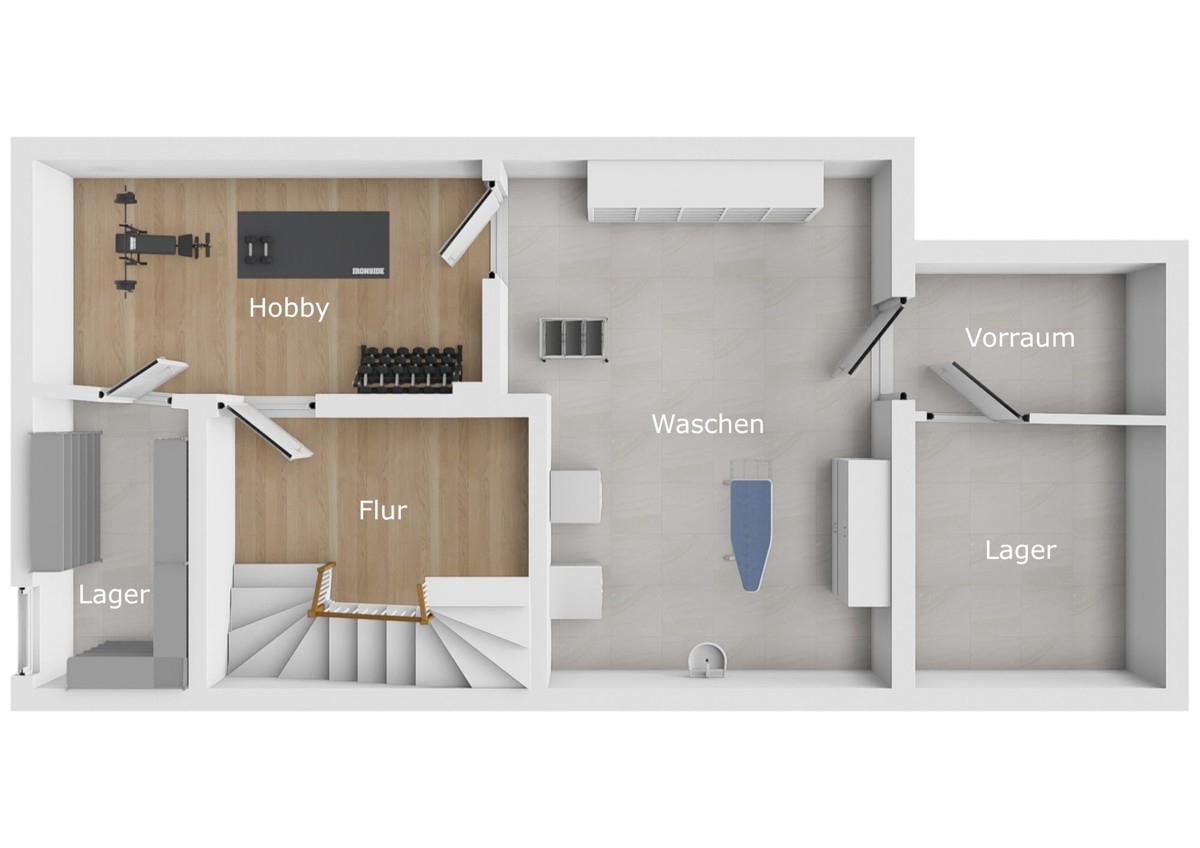 Im Keller stehen weiter Nutzflächen zur Verfügung. Eine praktische Waschküche, großzügige Abstellmöglichkeiten sowie ein Hobbyraum.
