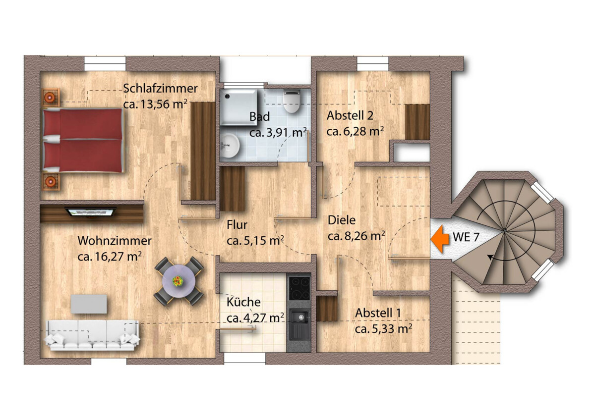 Die Flächenangaben wurden gemäß DIN 277 ermittelt.