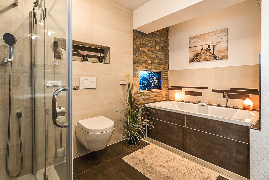 + XXL-Luxus Bad mit Dusche, Wanne und Infrarotkabine