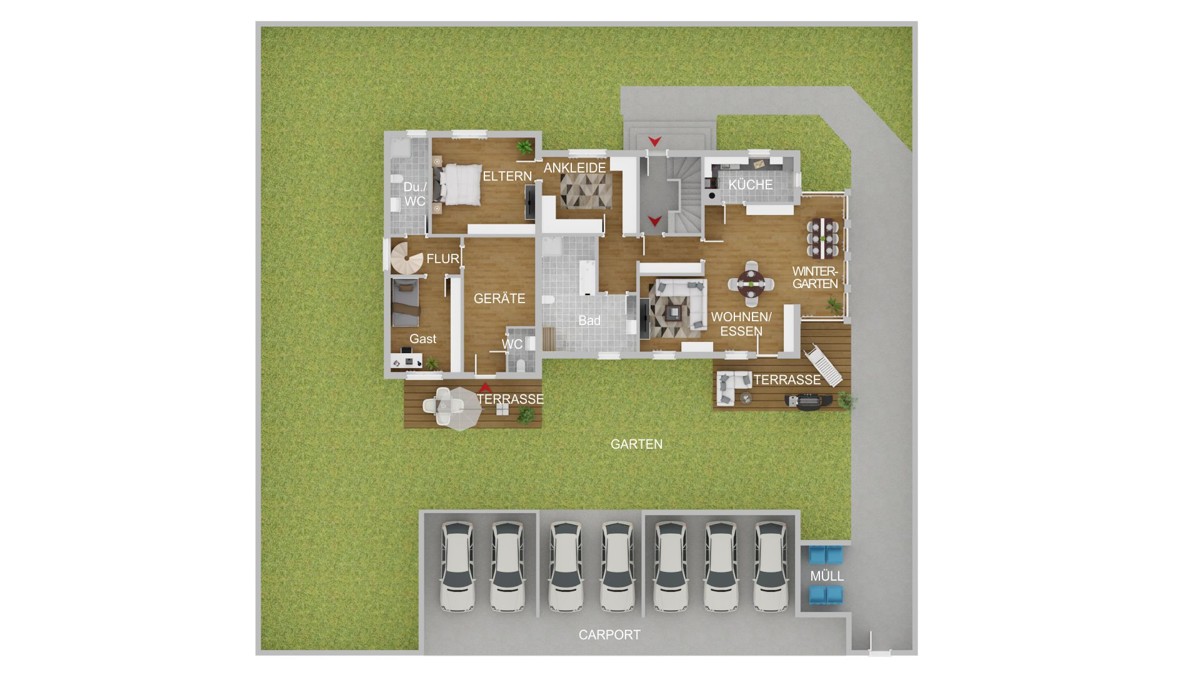 + 5 Stellplätze im Carport sowie weitere Freiplätze