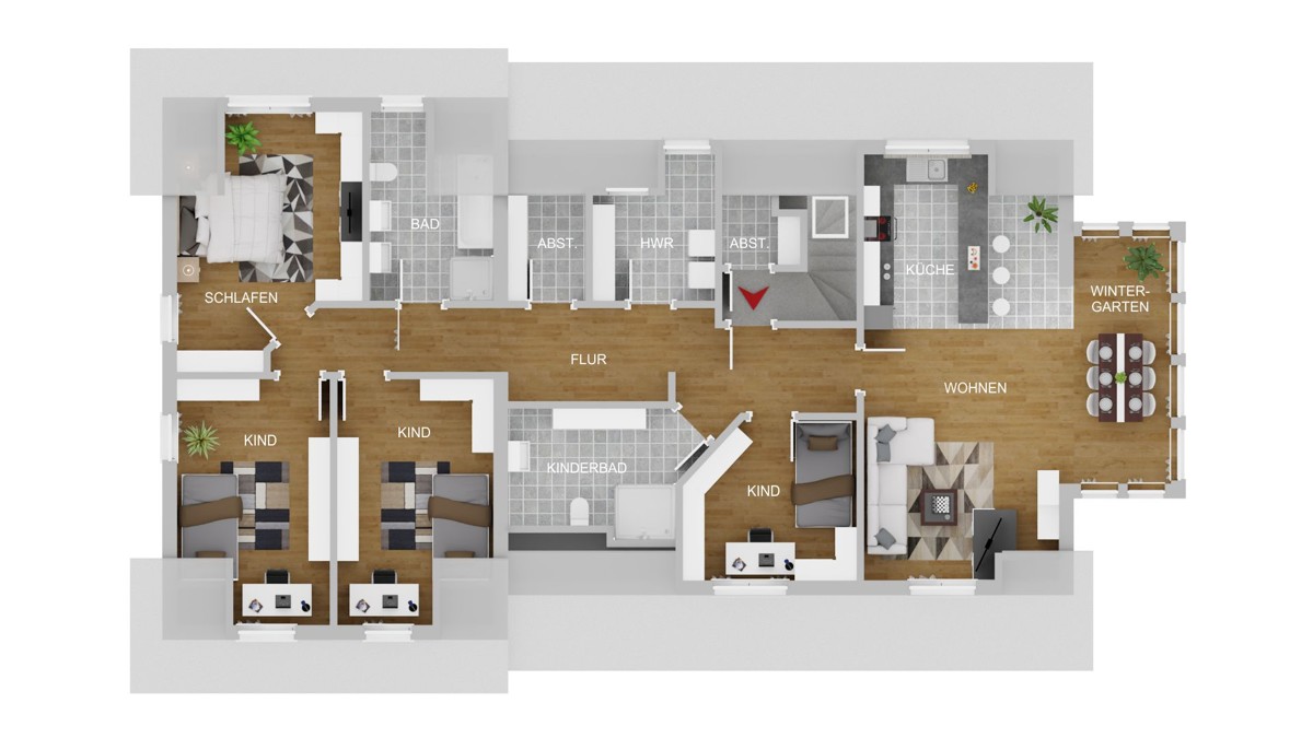 Das Haus umfasst insgesamt 16 Zimmer und bietet eine vielseitige Aufteilung. Im Erdgeschoss befindet sich eine seniorengerechte Wohnung mit Terrasse. Zudem verfügt das Haus über eine großzügige Maisonette-Wohnung, die sich vom Erdgeschoss bis ins 1. Obergeschoss erstreckt, sowie über eine 5-Zimmer-Wohnung im Dachgeschoss.