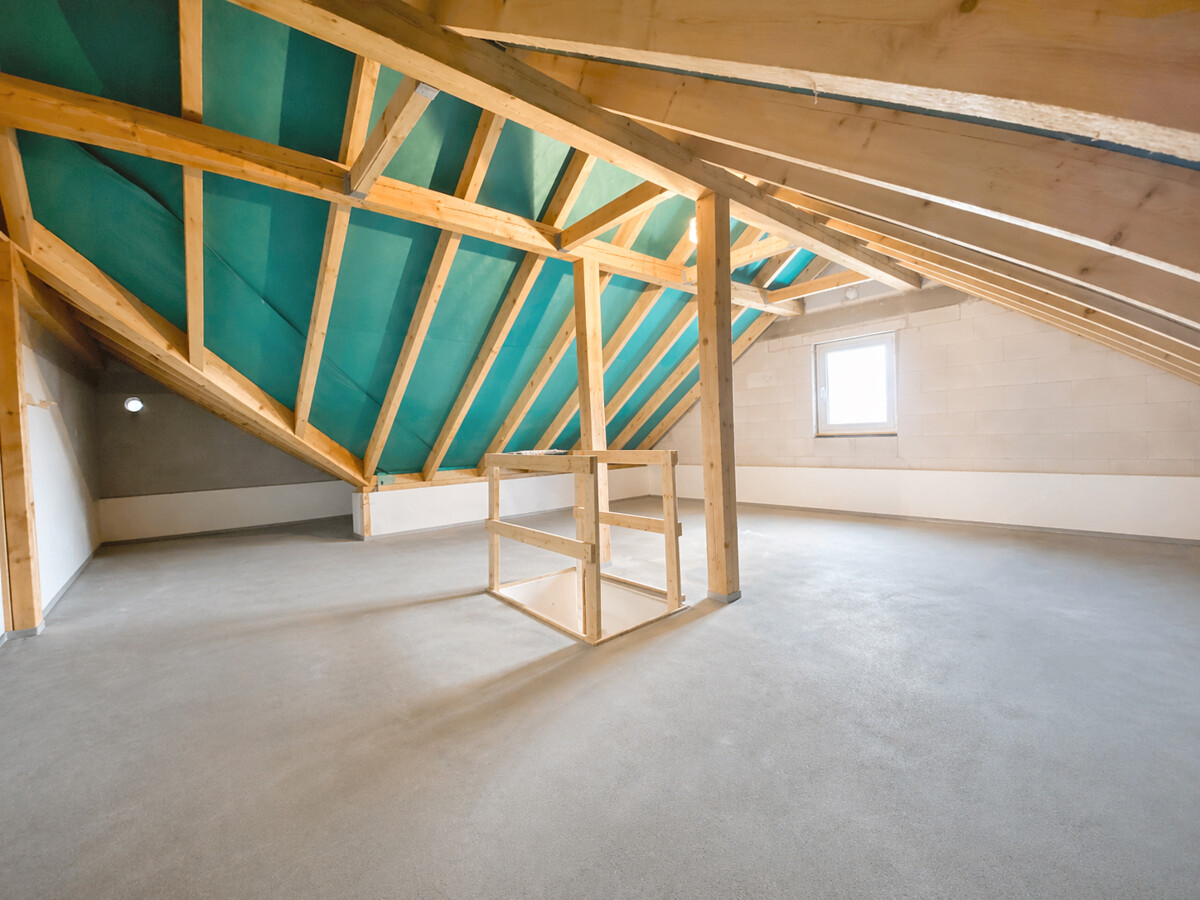 Der geräumige Spitzboden dient derzeit als Stauraum, eröffnet jedoch Potenzial für einen späteren Ausbau zu zusätzlicher Wohnfläche.