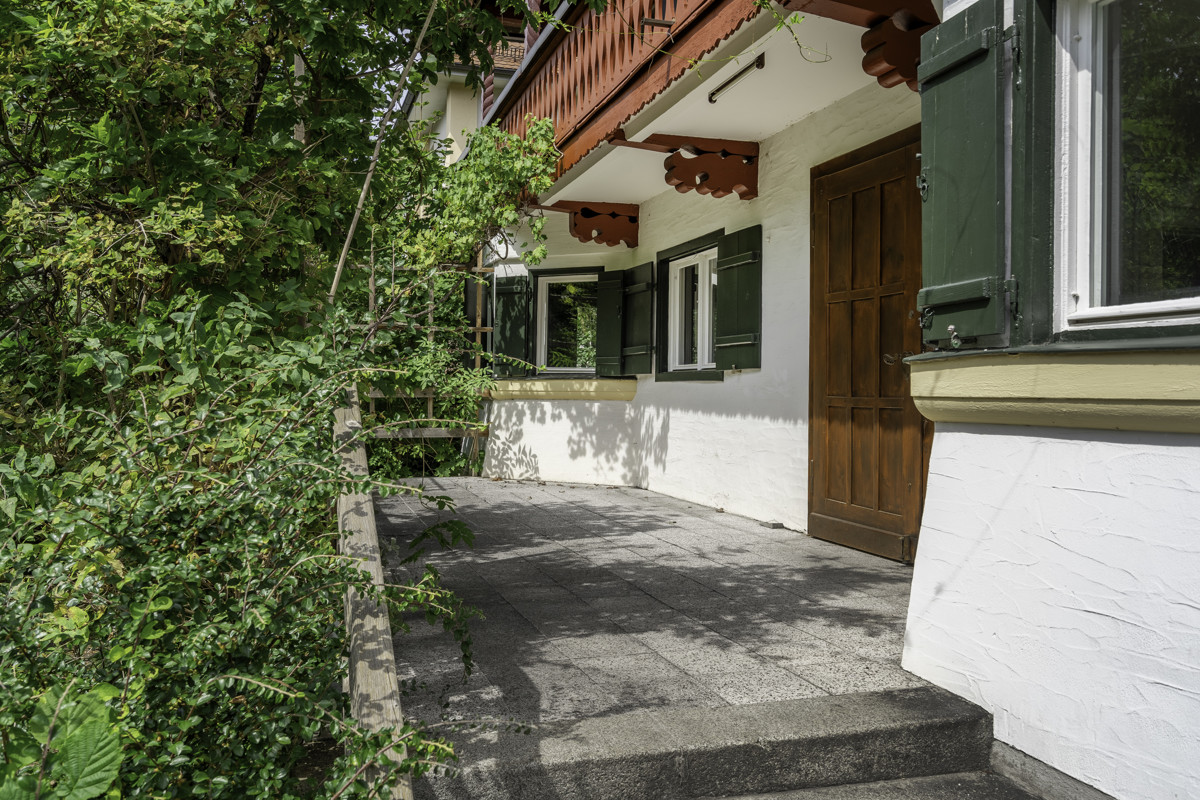 Besonders reizvoll ist das ca. 1.100 m² große Grundstück mit seinem abgeschirmten Gartenbereich, der eine private und ruhige Oase mitten in der Stadt bildet. Die markante alpenländische Fassade macht die Villa zu einem unverwechselbaren Blickfang.