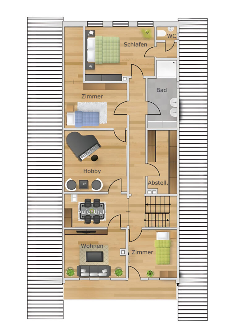 Mit insgesamt 14 Räumen im Erd- und Obergeschoss sowie weiteren 6 Räumen im Dachgeschoss, das sich zudem um ca. 118 m² erweitern lässt, eröffnet die Immobilie zahlreiche Gestaltungsmöglichkeiten für Wohnen, Arbeiten und individuelle Wohnkonzepte. Der großzügige Grundriss mit hohen Räumen schafft eine helle, offene Wohnatmosphäre, die sich flexibel an moderne Bedürfnisse anpassen lässt.