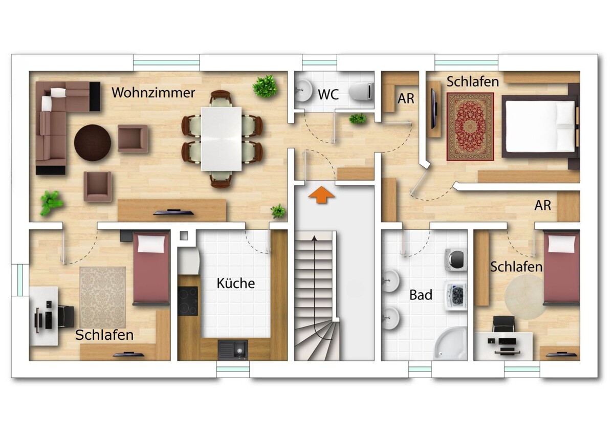 Dieses Zweifamilienhaus umfasst zwei separate Wohneinheiten mit jeweils vier Zimmern, Küche und Bad und eignet sich ideal für Familien oder Mehrgenerationenwohnen. In beiden Wohnungen steht zusätzlich ein Raum im Dachgeschoss zur Verfügung. Ein Gewölbekeller, eine Doppelgarage sowie ein überdachter Freisitz ergänzen das Angebot. Die Immobilie überzeugt durch ihre solide Bausubstanz und ihr vielseitiges Nutzungspotenzial.